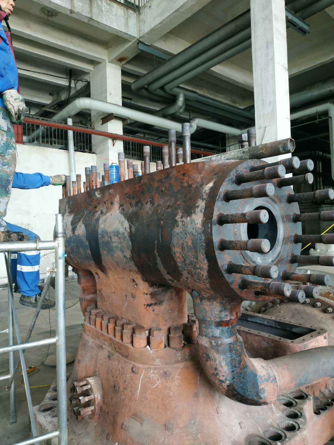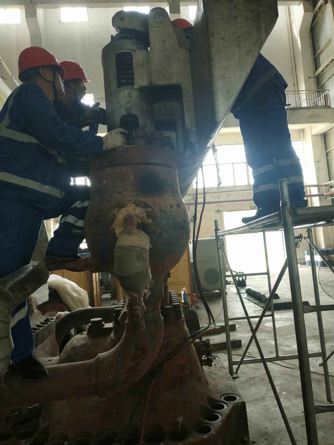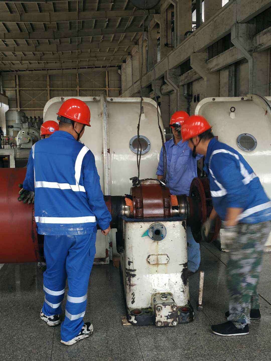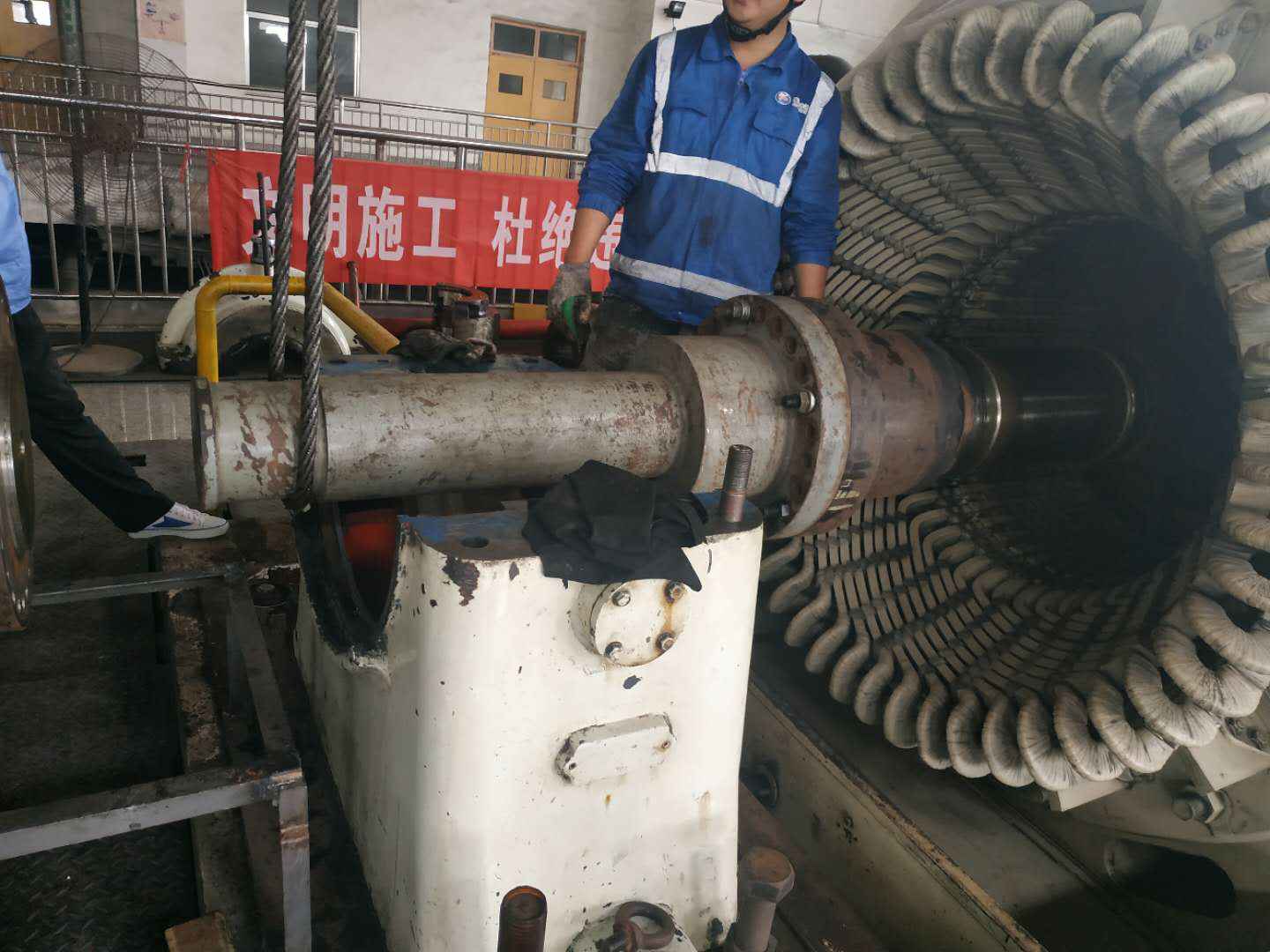 由开云官方版网站登录入口-开云(中国)承建的山东海能化学有限责任公司机组B15MW背压式汽轮机组(原 C25抽汽凝汽式机组)大修工程现已完成凝结水泵、油站检修工作,发电机前后轴承座基础垫铁研磨工作,目前蒸汽室螺栓的拆卸工作及发电机定子与转子的清理工作陆续启动,下气缸吊隔板工作也在稳步进行中。